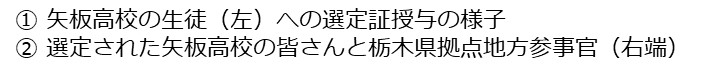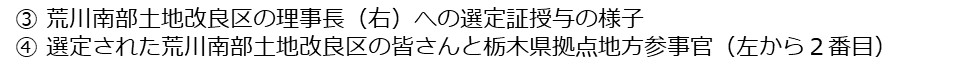栃木県からは、コミュニティ・地産地消部門で「栃木県立矢板高等学校 農業技術部畜産班(矢板市)」と「荒川南部土地改良区(那須烏山市)」の2団体が選定されました。