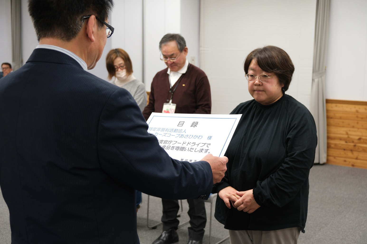 【寄贈品目録贈呈(特定非営利活動法人ワーカーズコープあさひかわ様)】