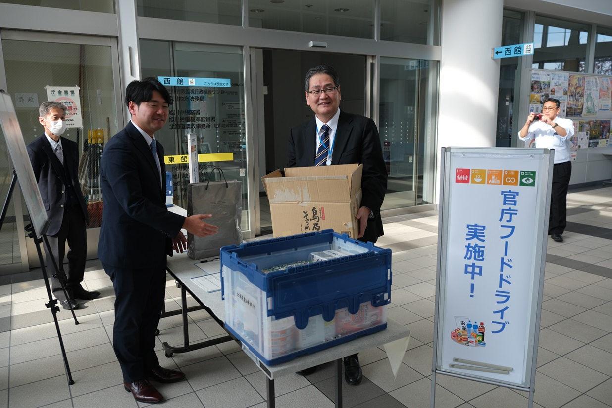北海道農政事務所旭川地域拠点は、10月30日の「食品ロス削減の日」に旭川地方合同庁舎に勤務する職員を対象として、「官庁フードドライブ※」を実施しました。