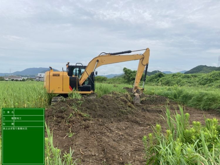 長年育まれてきた、作物の栽培に適した土である「表土」を、剥ぎ取ってほ場内に集積します。
