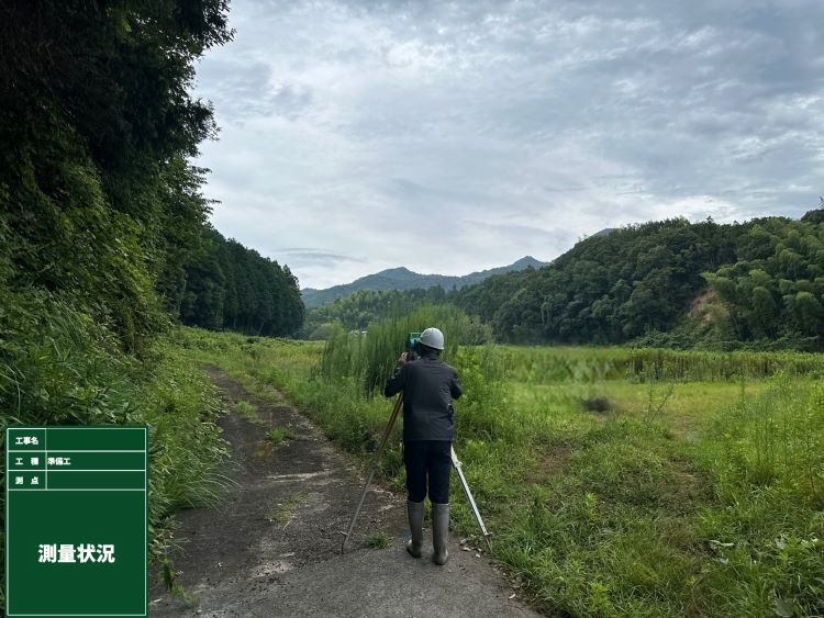 地形や高さ、既存の構造物の状況を把握するため、測量を行います。