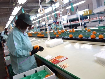 同選果場の職員に伺ったところ、「出荷量は昨年よりも7%程度多く、糖度は昨年よりも良い状態だ」と話されました。