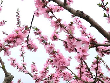 香川県内のももが開花最盛期を迎え、園地は鮮やかなピンク色に染まっています。