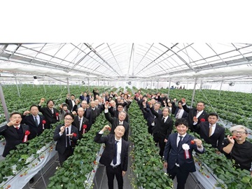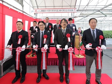 オープニングセレモニーでは、徳島県知事のほか、行政関係者、関連企業、地元農業者など約60名が出席する中、萩野地方参事官が来賓祝辞を述べた後、主催者の有限会社ミカモフレテック関取締役社長が、「東みよし町の一年中いちごを生産できる環境を最大限に生かし、農業を基盤に観光や雇用の拡大を図り、地域経済を循環させることに挑戦したい。いちごを核とした『人が集まるまち』の実現のため、官民一体の『にし阿波いちごタウンプロジェクト』の推進に今後も尽力したい」と抱負を述べられました。