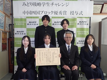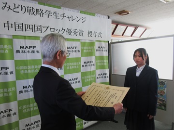 徳島県立小松島西高等学校に「第2回みどり戦略学生チャレンジ」中国四国ブロック優秀賞を授与