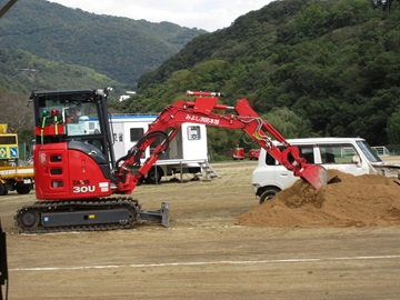 その後、トラクターによるは種の実演が行われ、時速7キロメートルの速度でトラクターがほ場内を移動し、装着した二条のは種ユニットにより3~4センチメートルの深さに種がまかれている様子を見学しました。