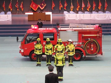 また会場では女性防火クラブや幼年消防クラブの演技、消防団による消防ポンプ操法の実演等が行われました。