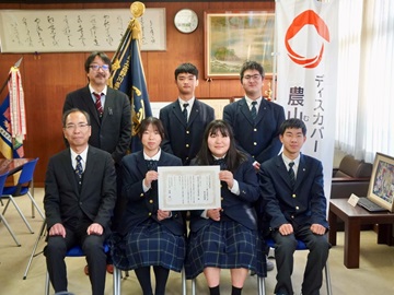 徳島県立城西高等学校神山校「まめのくぼ」プロジェクトチームに中国四国農政局「ディスカバー農山漁村(むら)の宝」選定証を授与