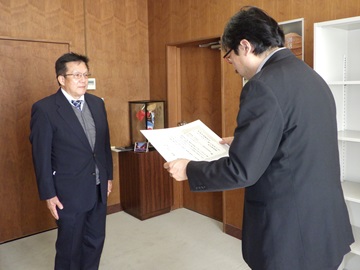 意見交換では、高井三好市長から、「地域の大切な資源を守り、仲間とともに発展させてきたことと、茜が生み出す美しい色に感動している。当市としてもしっかり応援していきたい」との発言があり、前川会長は、「この受賞を励みに、今後も若い後継者を少しずつ増やして、継続して活動したい」と話されました。