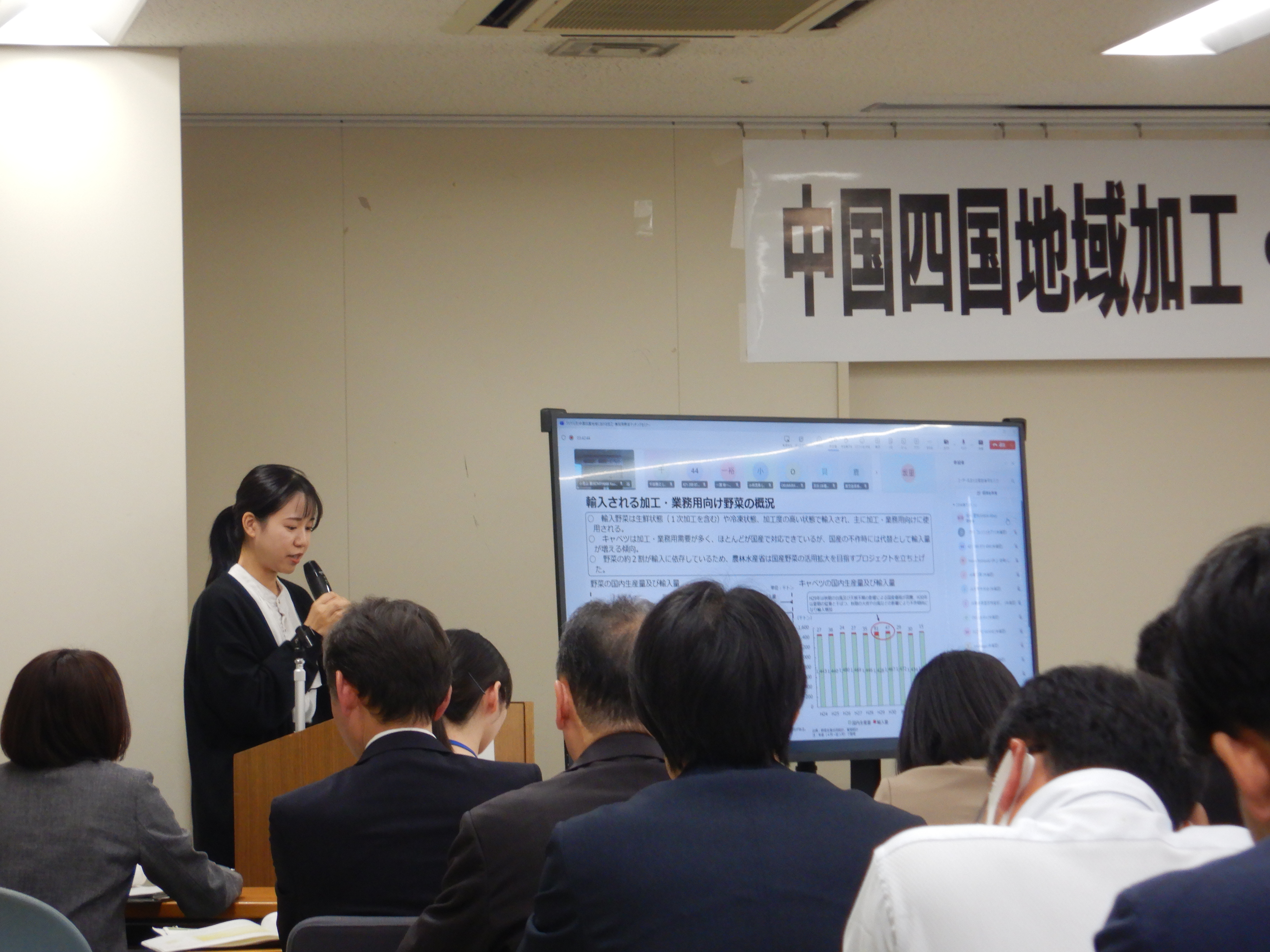 これを受けて、中国四国農政局では、中国四国地域の加工・業務用野菜の生産及び活用のさらなる拡大に向けて、管内管外問わず生産者と実需者のほか、中間事業者、物流事業者、資機材メーカー、金融機関、研究機関、行政機関等の幅広い方々を対象に、新たな出会い、課題解決の糸口発見、商談機会への土台づくり等ができるセミナー及び交流会を開催しています。