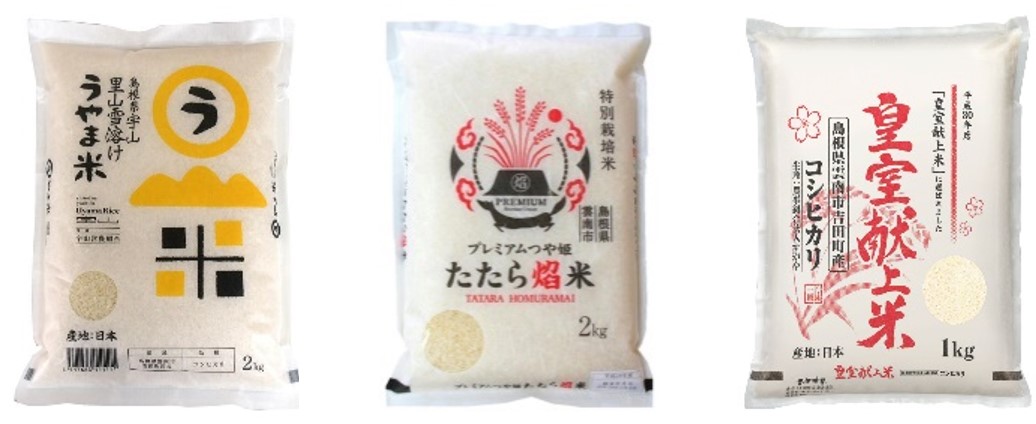 - 雲南市の良質なコシヒカリ生産地である宇山地域及び菅谷地域(標高400メートル~450メートル前後)のコシヒカリを使い「うやま米」「皇室献上米」として輸出。つや姫は雲南市産の独自プレミアム基準をクリアした「プレミアム つや姫 たたら焔米」として輸出。
