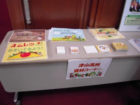 また、津山高等学校の生徒が作成した「食育紙芝居」、「食育かるた」、「食育ソング」などの教育資材を展示していただき、参加者は実際に手にとってご覧になっていました。