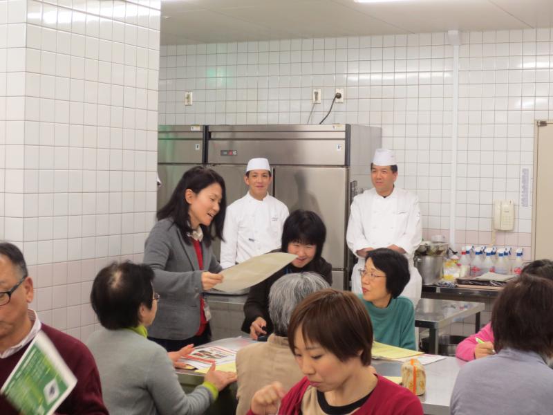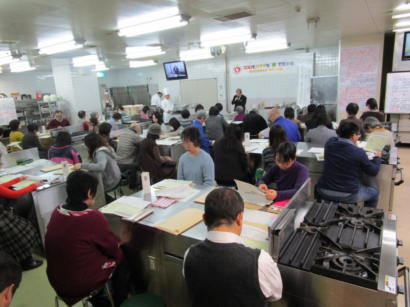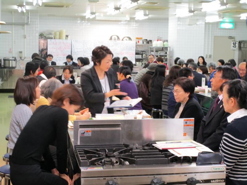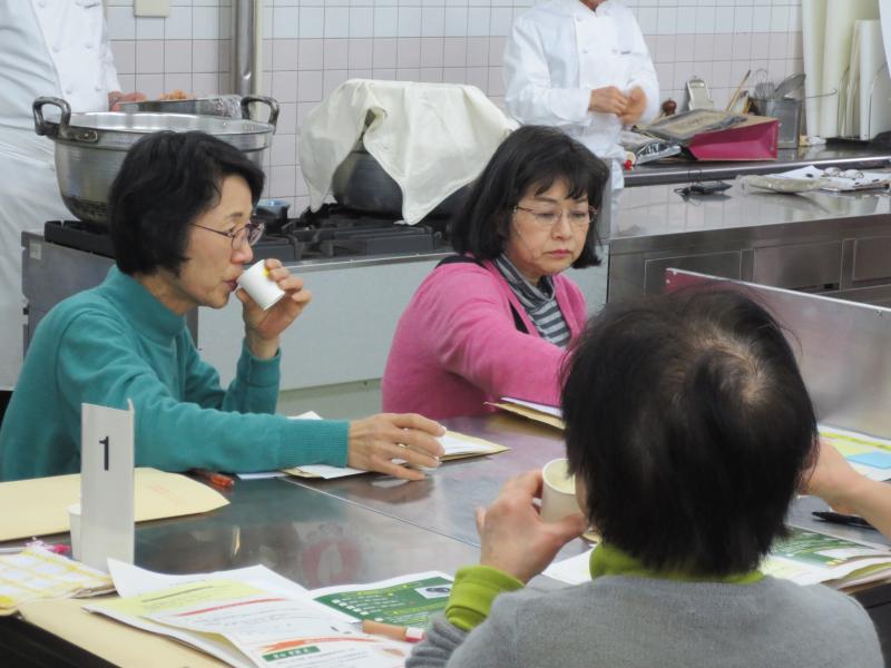 意見交換では、参加者から、「授業で生徒に出汁をとらせて調理実習をしているが、簡単にとる方法があれば知りたい」、「出汁をとる水について、何か注意することがあるか」などの質問が出されました。