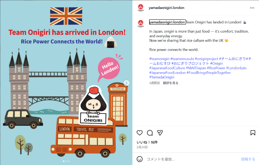 Posts shared as part of this initiative will use the hashtags “#teamonigiri” and “#teamomusubi,” and the rice consumption promotion website Yappari Gohan Desho! run by the Ministry of Agriculture, Forestry and Fisheries (MAFF) will make it possible to view posts from the companies and other groups visited by team ONIGIRI.