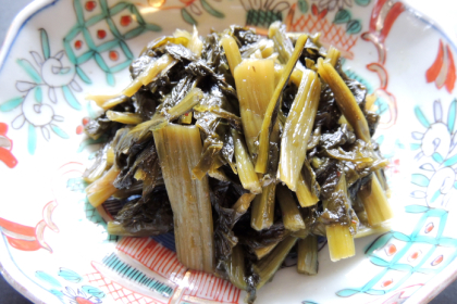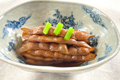 Around the Chuno area, boiled kumoji pickles and pickles boiled in miso are examples of local dishes that involve boiling foods that were pickled as a means of preservation. These dishes, which let people boil pickled foods that had grown cold in winter so they could be enjoyed warm, are examples of local cuisine born of local people’s attitude of wanting to fully value their food by eating every last bit of the blessings of nature and their carefully cultivated crops in an era when raw ingredients were hard to come by.