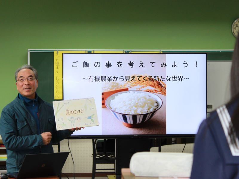 各校では、檜山振興局の職員から、「有機農業とは何か」、「せたな町の有機農業」等について、有機農業に取り組む生産者からは、「自身の経験を交えた有機農業」に関する説明がありました。