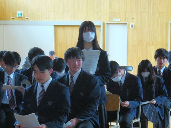 生徒からは、「異常気象に対し、農業はどうしていくと良いか。」や「酪農において、みどり戦略に取り組める良いアイデアは無いか。」などの質問のほか、「様々な問題の中でみどりの食料システム戦略が幅広く関係してくることが分った。」、「みどりの食料システム戦略を意識していこうと思った。」や「みどり戦略学生チャレンジ取組紹介にあった、他校との協働に興味を持ちました。」などの感想が寄せられました。
