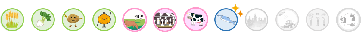 赤(あか)くてきらきらしている「いくら」は、さけの卵(たまご)なんだ。オホーツクは稚魚(ちぎょ)(魚(さかな)の赤(あか)ちゃん)を川(かわ)に放流(ほうりゅう)し、海(うみ)で大(おお)きく育(そだ)ったさけがたくさんとれることで有名(ゆうめい)なんだ。あと、にしんの卵(たまご)は「数(かず)の子(こ)」、たらの卵(たまご)は「たらこ」と呼(よ)ばれているよ。