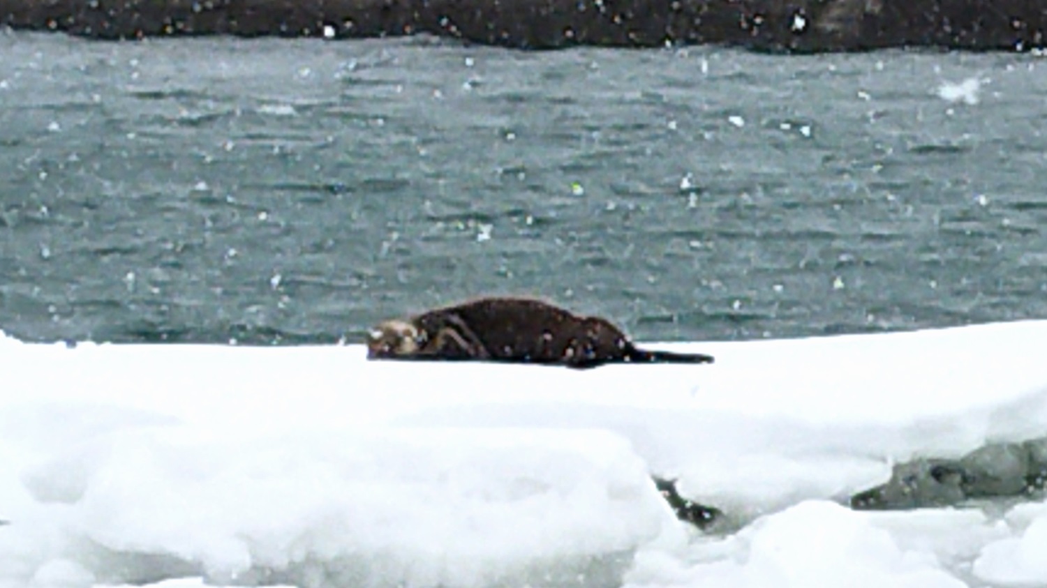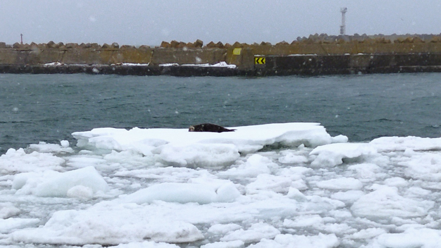 湾一面に広がる氷のほか、その上で休むアザラシが見られることもあります。