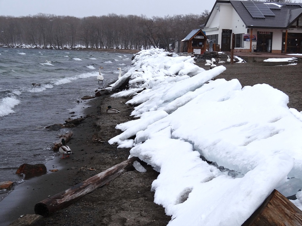 最低気温が一桁の日も増え、弟子屈では少しずつ春の気配が感じられるようになってきました。日本最大のカルデラ湖・屈斜路湖では、冬の間に結氷した湖の氷が風に押され、湖岸へと流れ着きます。