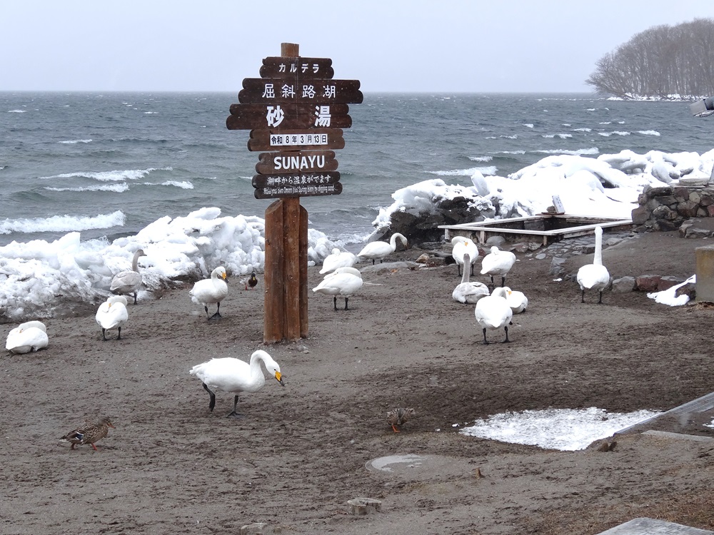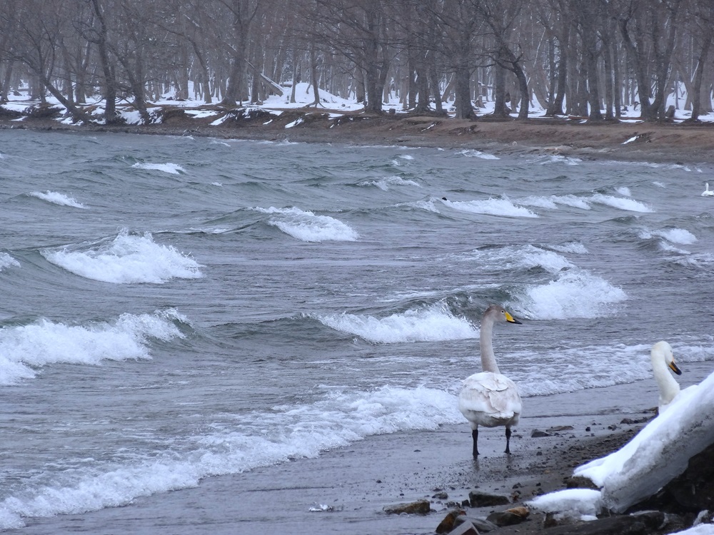湖畔では、これからシベリアへ旅立つ白鳥たちが羽を休めています。