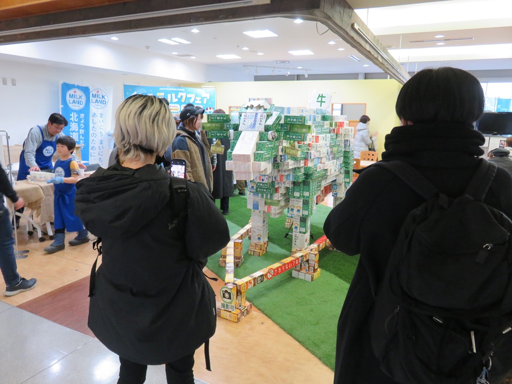 北海道農政事務所釧路地域拠点は、令和8年2月22日(日曜日)、23日(月曜日)に「たんちょう釧路空港」で開催された、釧路地区農協酪農畜産対策協議会が主催する牛乳・乳製品消費拡大イベント「くしろミルクフェア」において、牛乳パックで制作した原寸大の牛模型「ジャンボ牛」と、座って楽しめる子牛模型を展示しました。