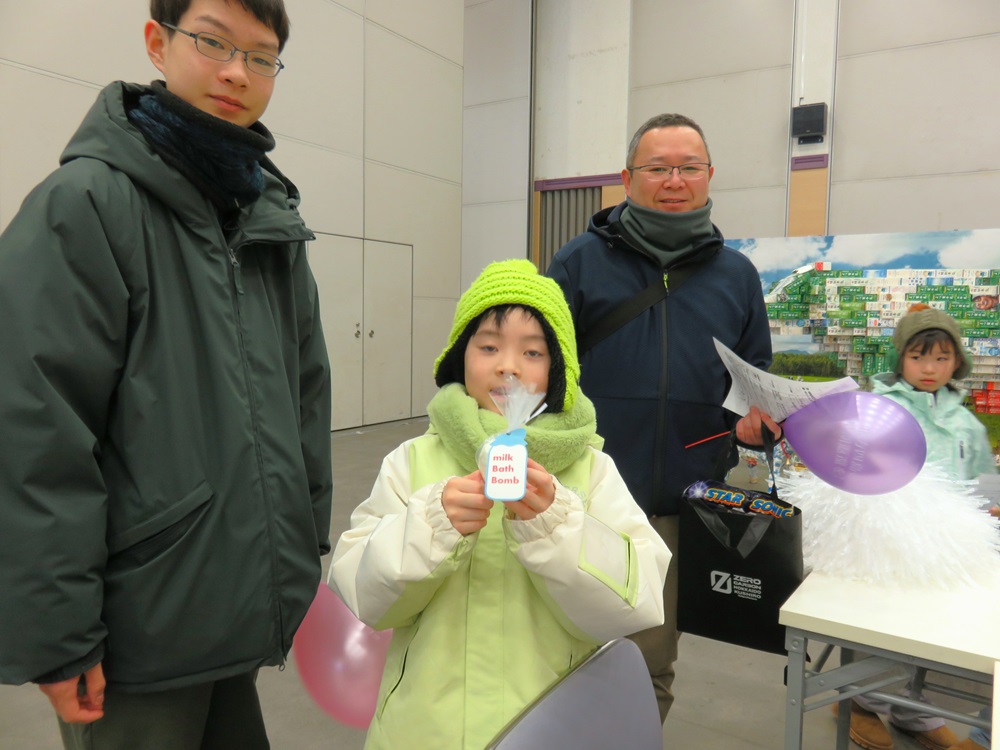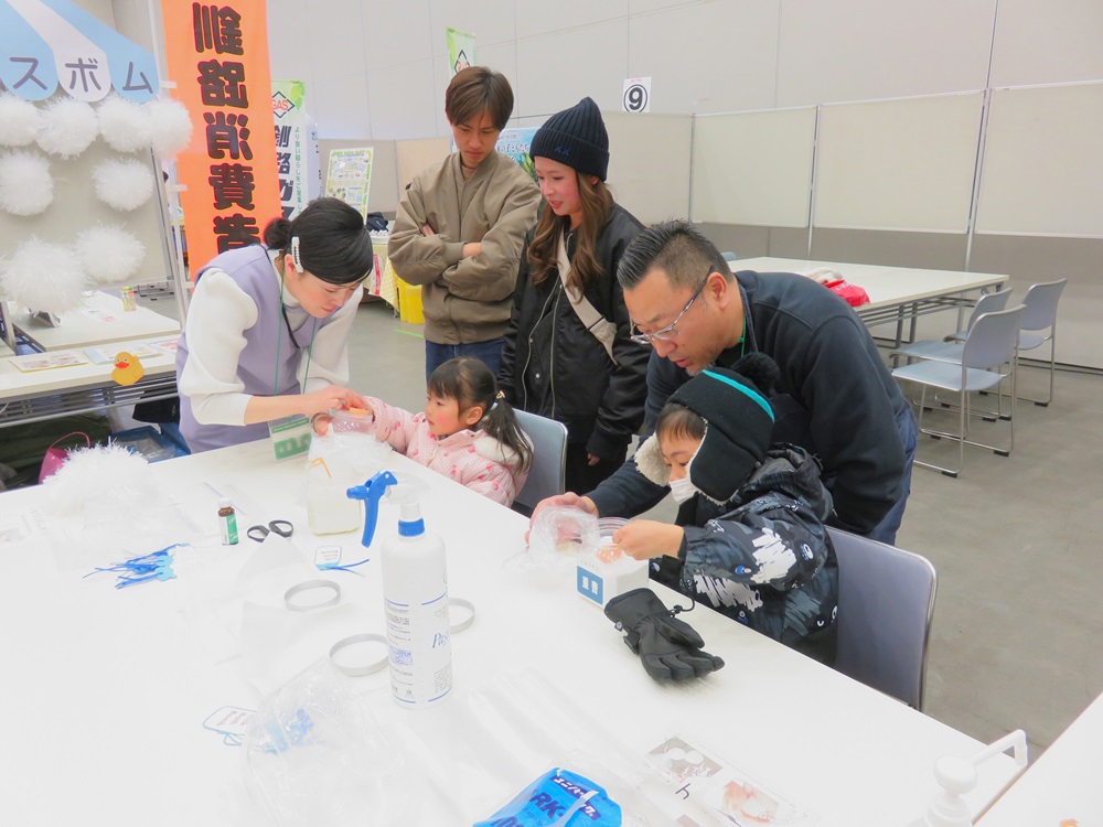 また、子ども向けの「ミルクバスボム作り」コーナーでは、工作体験を通してスキムミルクの消費拡大を呼びかけました。体験した子どもからは、「お風呂に入れるバスボムが大好き。ミルク色でミルクの香りもするお風呂に入るのが楽しみ。体験できてうれしい!」との感想が寄せられました。2日連続で体験に訪れる子どもも見られ、保護者からは「簡単に作れるので、スキムミルクを購入し、家庭でもやってみたい。」との声が聞かれました。