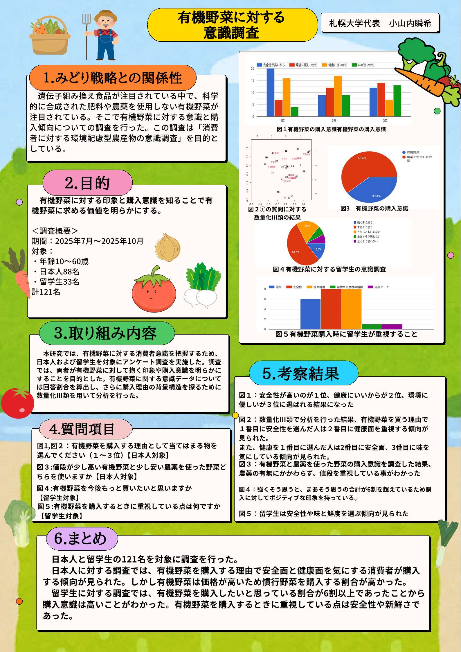 第2回みどり戦略学生チャレンジでは、高校生や大学・専門学校生が「みどりの食料システム戦略」に関わる取組を発案・実施していただき、北海道ブロック大会には31件のご提出がありました。たくさんのご参加ありがとうございました!