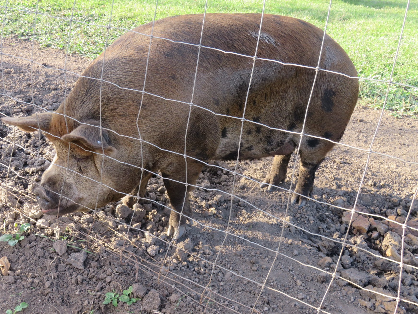 遊牧舎で放牧されている豚