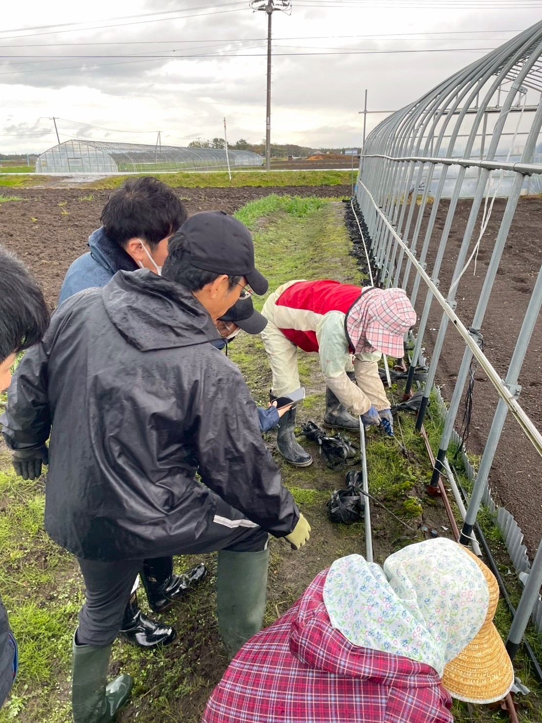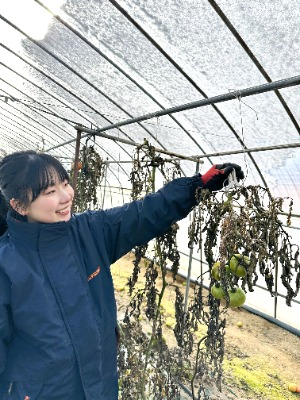最終回となる第4回目は、生産者ごとに、令和7年10月22日、11月11日、19日、21日の日程で実施しました。今回の農作業体験では、主に、畑やハウスで作物を栽培する時に使用していた器具や道具類を片づける作業を行いました。畑に打っていた杭を抜いたり、トマトの株を支えるために使用していた洗濯ばさみを回収したりと、手間や労力が必要な作業が様々ありました。また、雪が降る中で作業を行った日もあり、来年の栽培に向けて、スピード感を持って片づけ作業を完了させる必要があることを実感しました。
