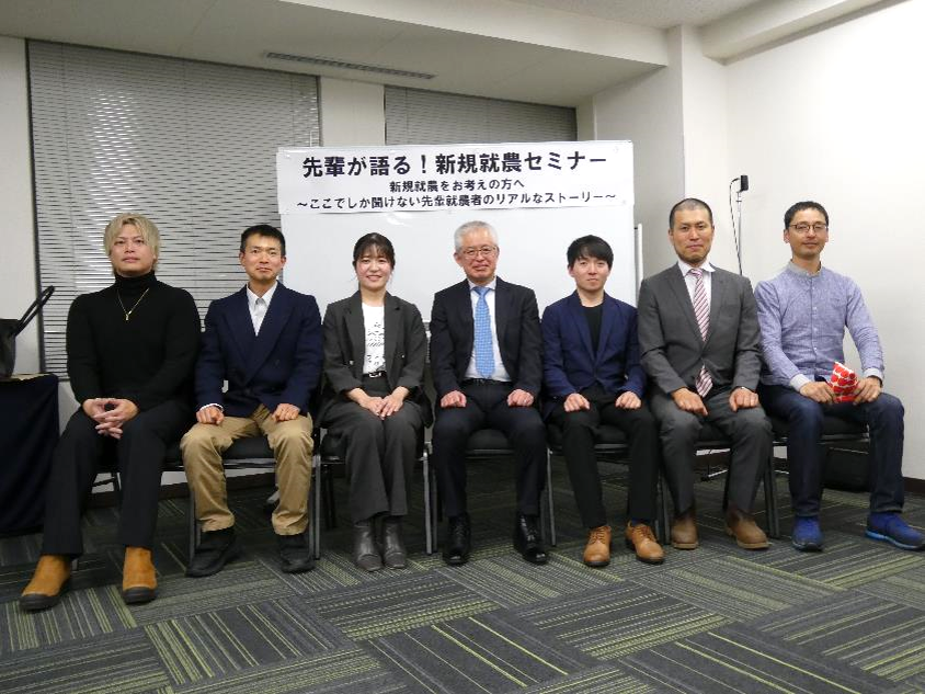札幌地域拠点は、農業に興味があり就農を目指す方や農業関係の学校で学んでいる方々に対し、先に就農した方から自身の取組を直接アピールしてもらうことにより新規就農の促進を図るべく、12月6日に札幌市内においてセミナーを開催しました。