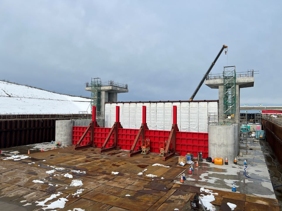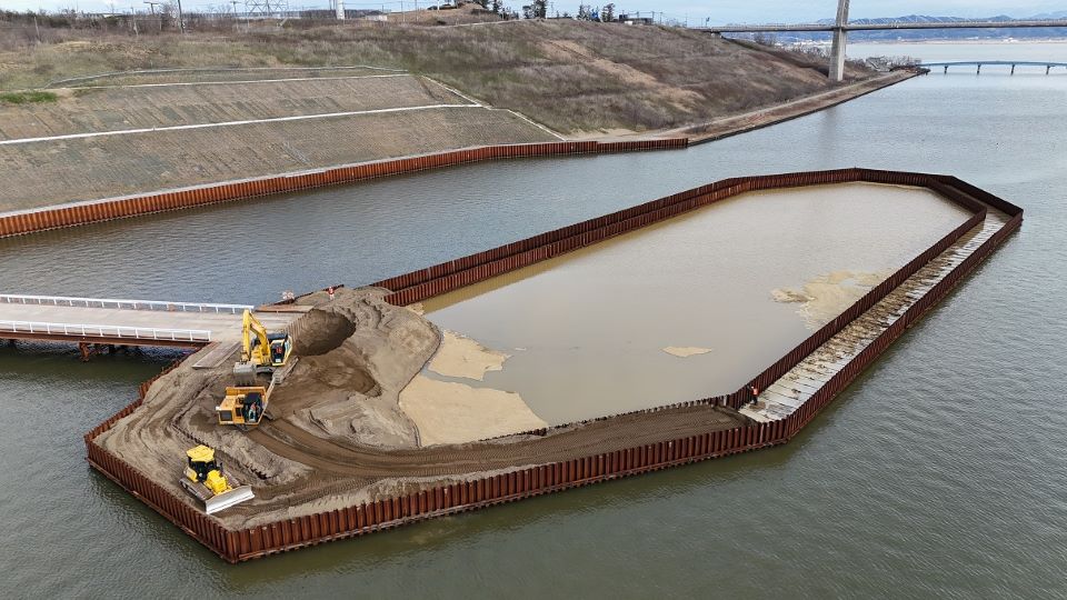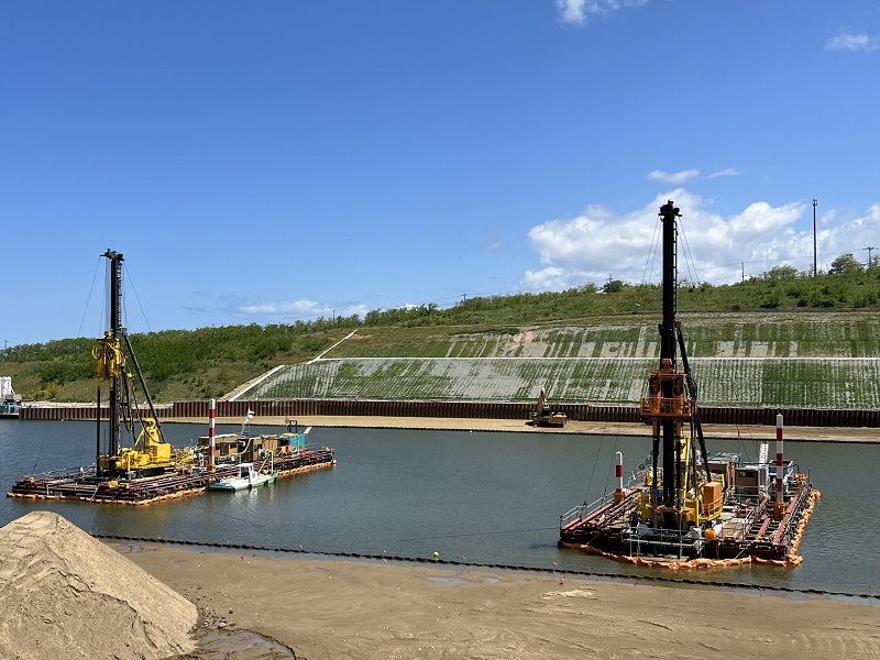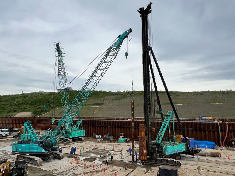 右岸:仮廻し水路工にて鋼矢板の打設が完了