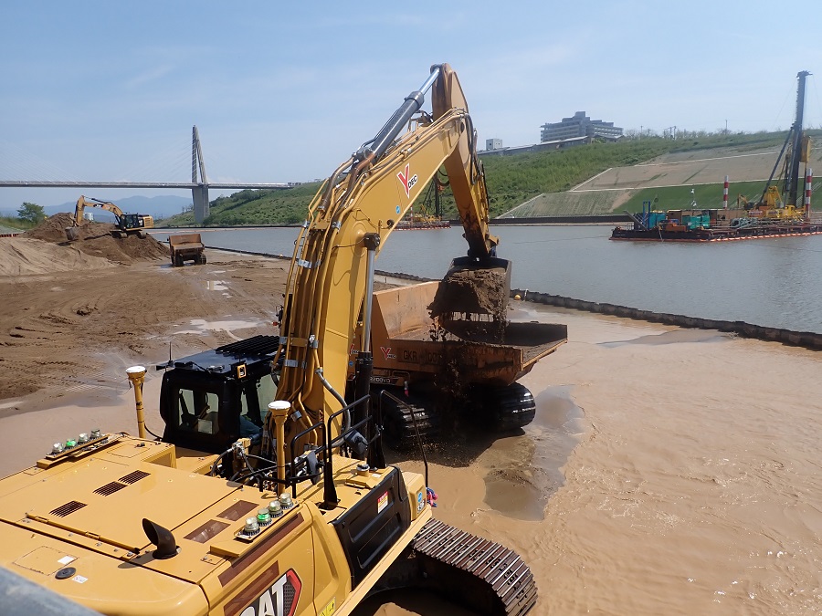 河川内:河床堆積土対策工にてを実施中