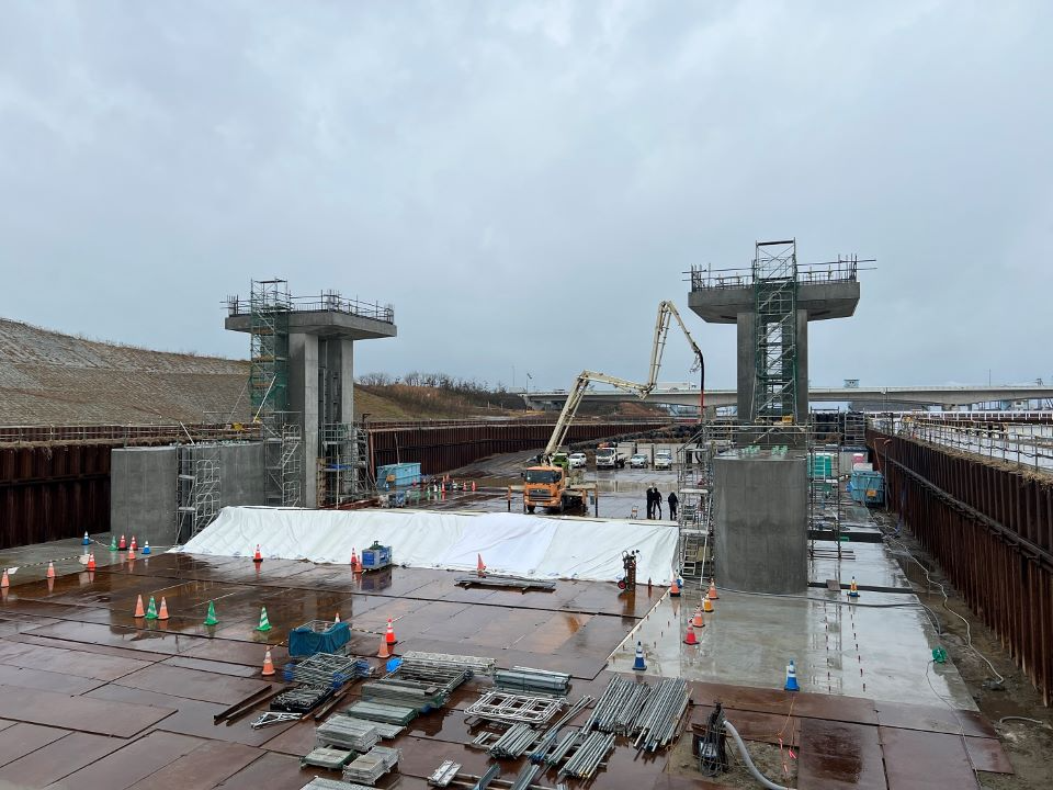 両岸:法面掘削工を開始