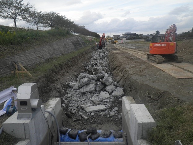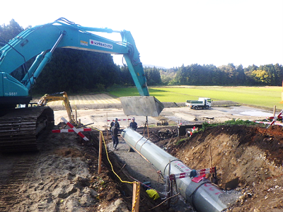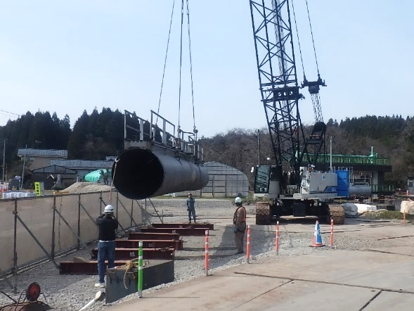 令和5年9月から不要となった加治川横断サイホンの撤去工事に着手し、令和5年度には左岸側の加治川横断サイホンの撤去が完了しました。令和6年度には引き続き残った右岸側の加治川横断サイホンを撤去する予定です。
