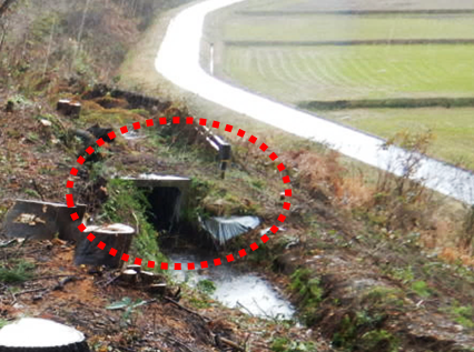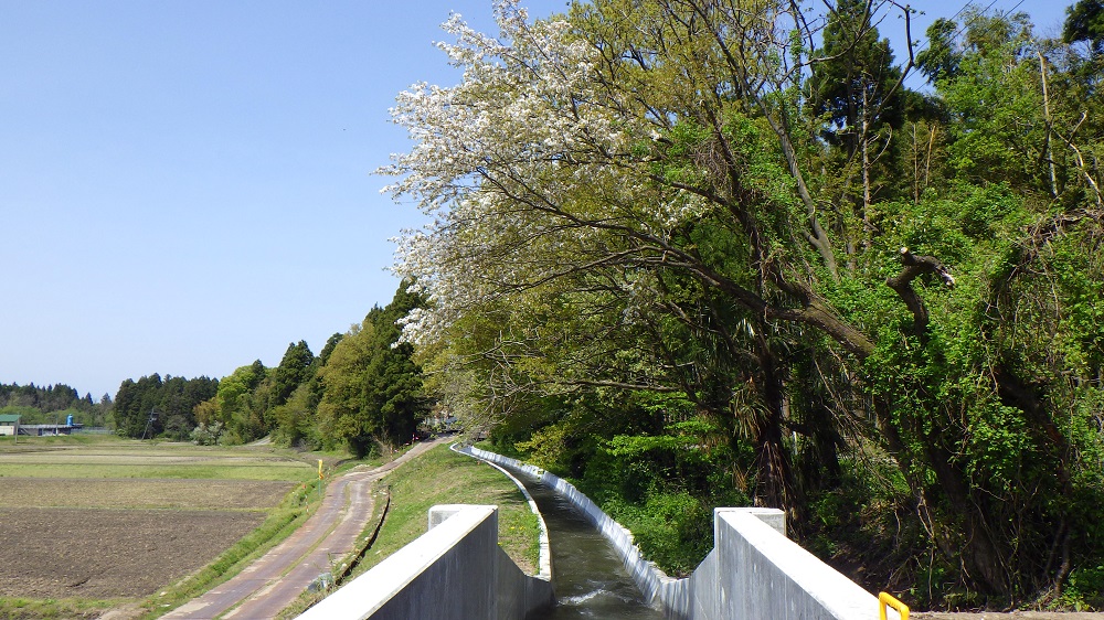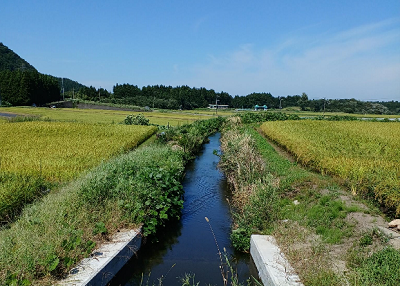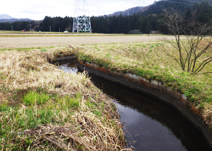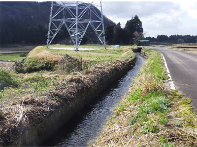 法正橋から市道小坂月岡温泉線側に向かう水路