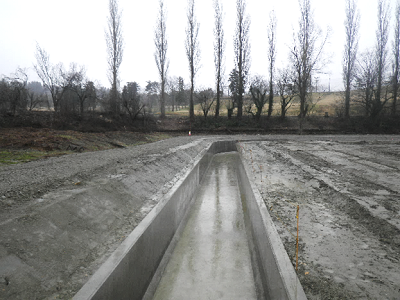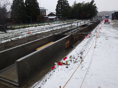 令和4年度は、開水路の敷設工事が法正橋沈砂池側から始まり、約0.8km区間の改修を行いました。