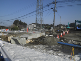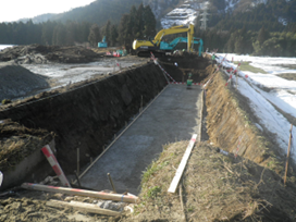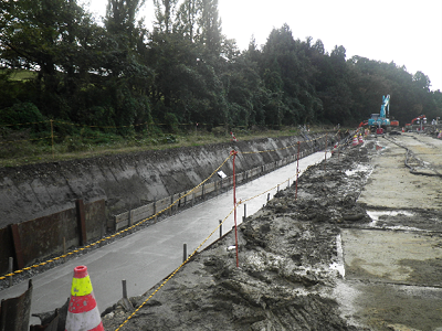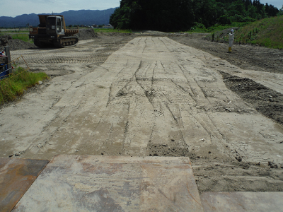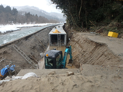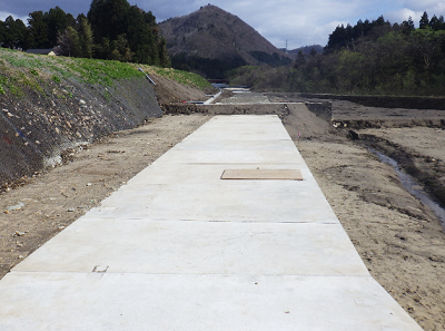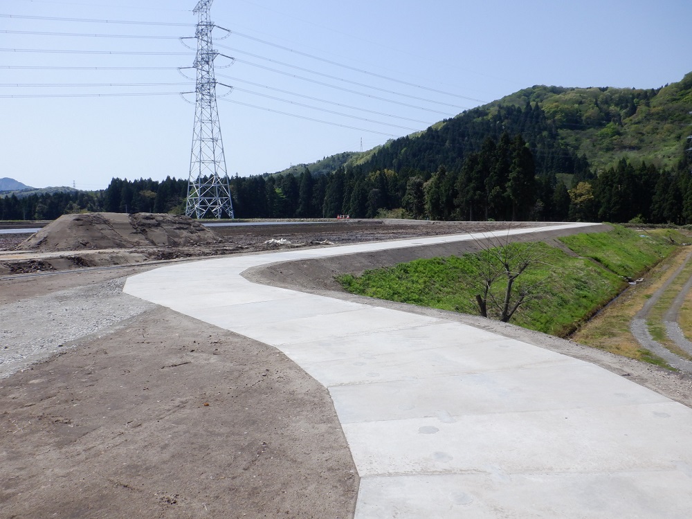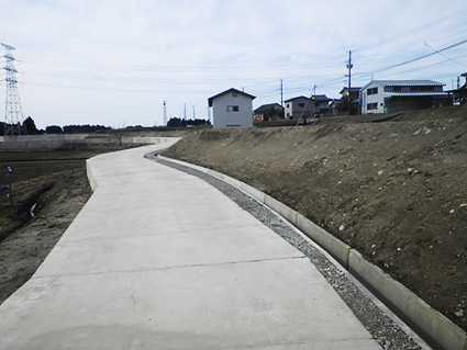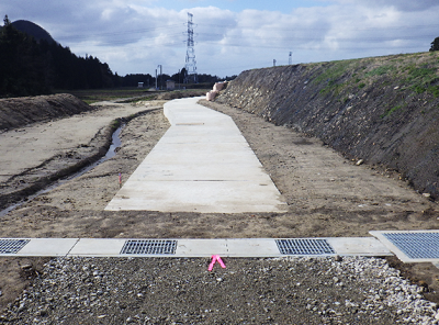 平成28年度までに、総延長約3.7kmのうちの約4割の改修を完了し、平成29~30年度は、施工済み区間の道路復旧や腹付け盛土など付帯工事を実施しました。