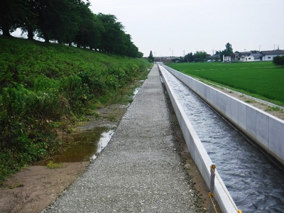 平成28年度までに左岸幹線用水路(約6.0km)の約9割の改修を行い、平成30年度には残りの区間における水路の補修工事や、水位を調整するためのゲートの改修を行い、全線の改修を完了しました。