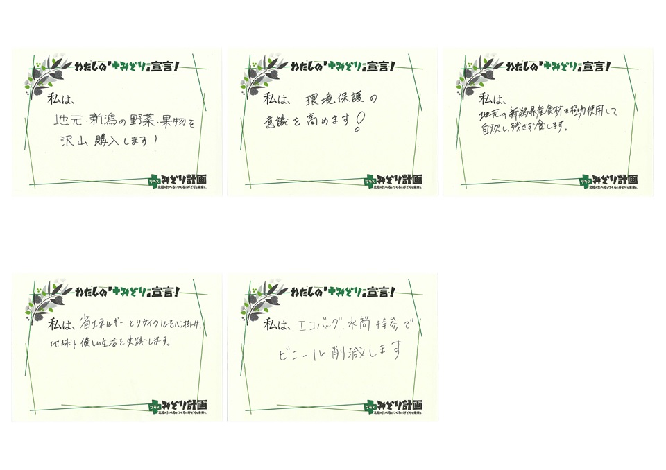 また、会議終了後、日本政策金融公庫新潟支店の皆様から、「+みどり計画」の一環である「わたしの『+みどり』宣言」を記入していただきました。この宣言をきっかけに、「+みどり計画」の広がりを期待しています。