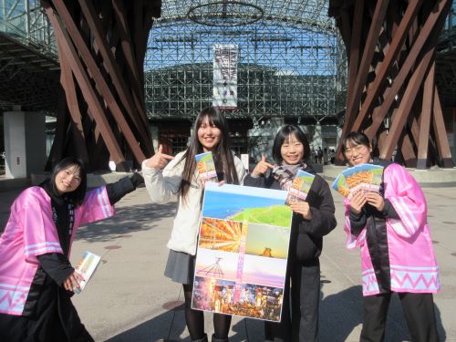 金沢駅前で能登の郷土料理や伝統食を紹介したリーフレットを配布しました。(令和8年2月20日)