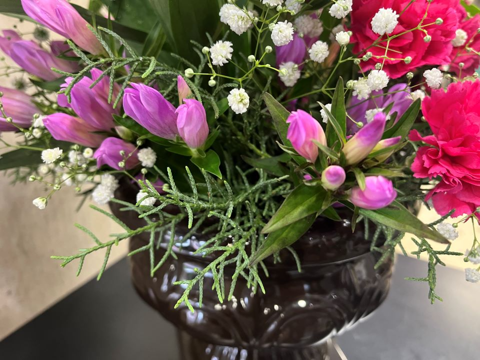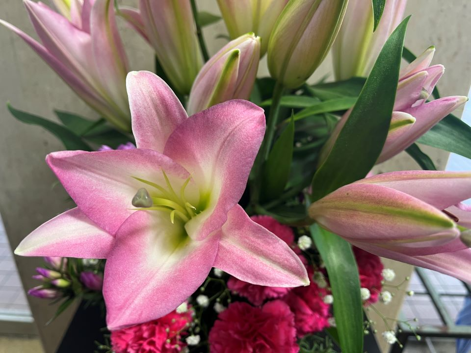 北陸農政局では、2027年(令和9年)3月から開催されるGREEN×EXPO2027について多くの方に関心をもっていただくとともに、これを契機として北陸地域の花き園芸産地を知っていただき、管内の花き園芸振興につなげるため主に北陸地域で生産された花等を使ったフラワーアレンジメントを合同庁舎入口に展示しています。 来庁の際はぜひご覧ください。