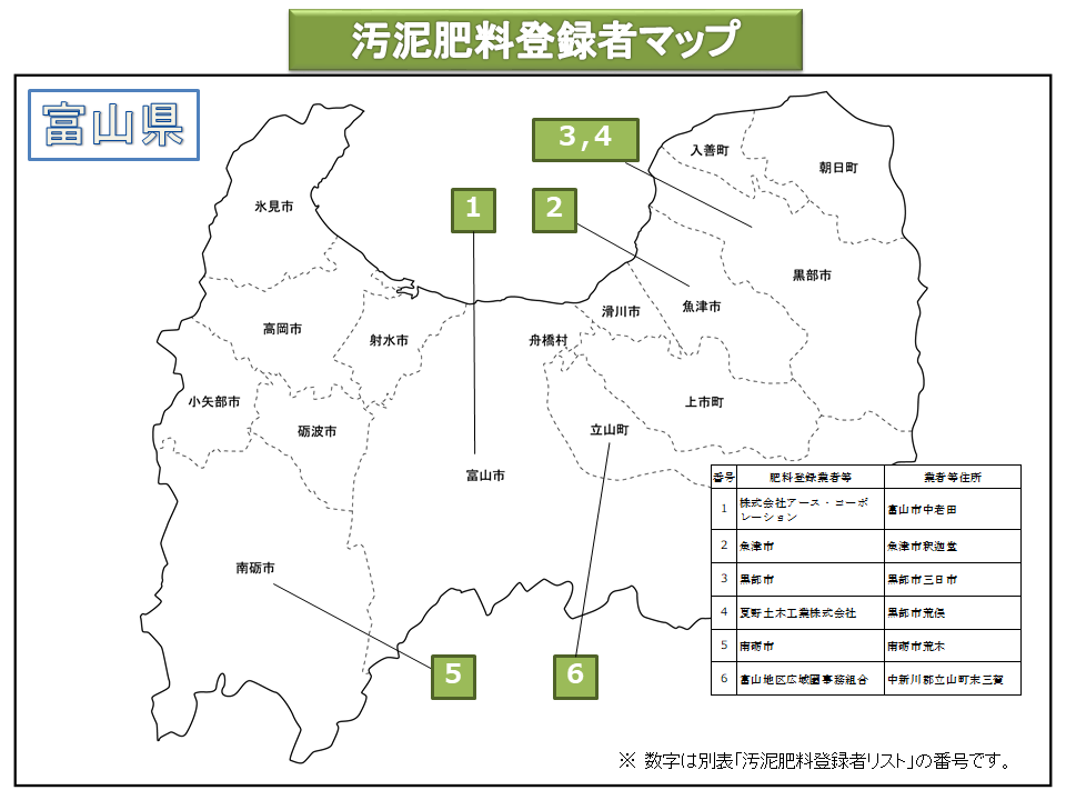 汚泥肥料登録者MAP(富山県)