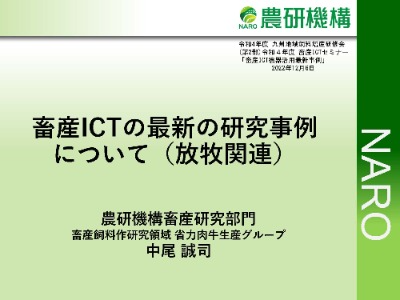 - <畜産ICTセミナー「畜産ICT普及のための取組事例等の紹介」((九州農政局)令和4年12月6日)>