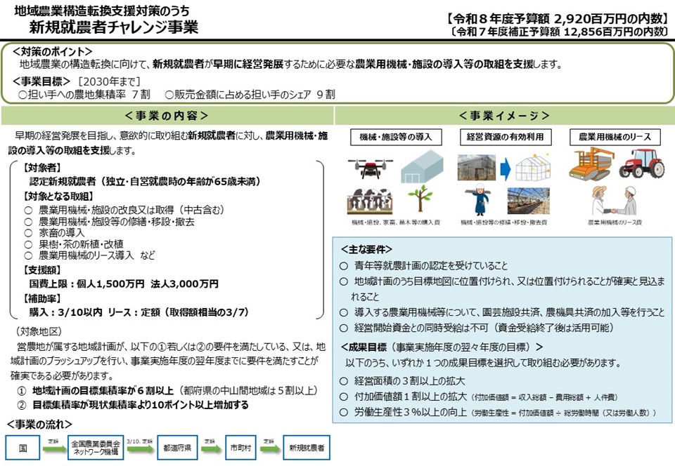 - 令和7年度補正 新規就農者チャレンジ事業実施要綱(別記2)(PDF : 3,033KB)