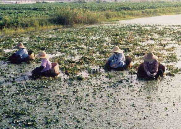 堀割(クリーク)でのヒシ実採り