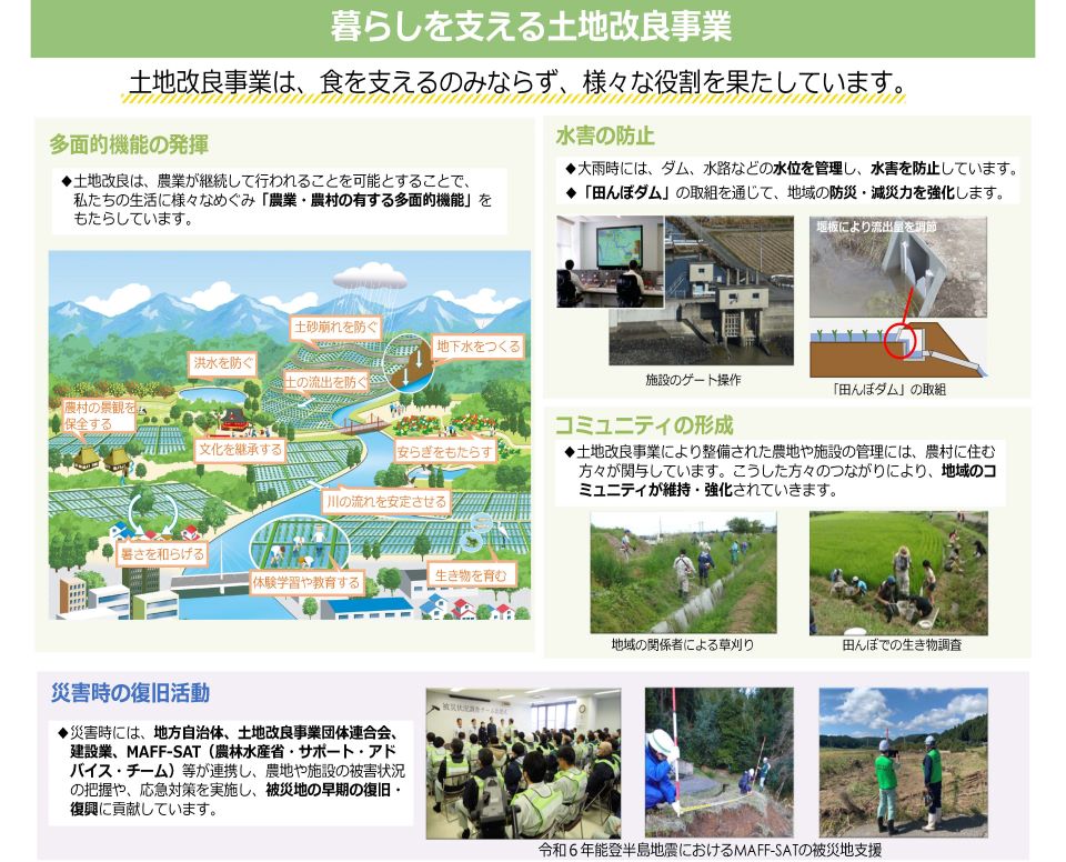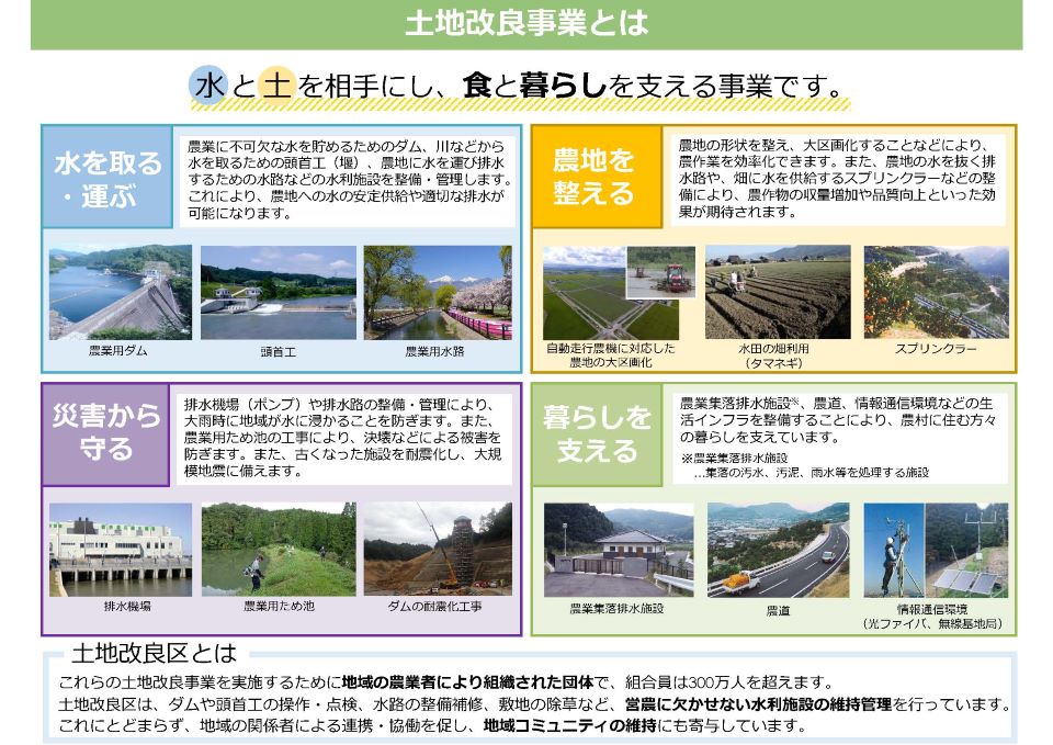 - 1 (1)土地改良事業とは(2)食を支える土地改良事業(3)暮らしを支える土地改良事業(PDF : 4,031KB)
