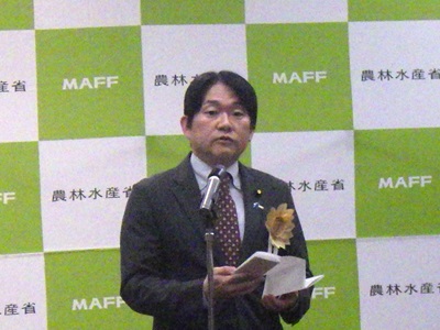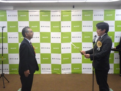 3月3日 山下農林水産副大臣は、農林水産省で開催された「バイオマス産業都市認定証授与式」に出席し、祝辞を述べるとともに、バイオマス産業都市認定証の授与を行いました。