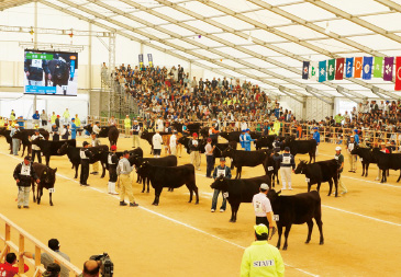 ![]() 全国和牛能力共進会・種牛審査の様子。 |