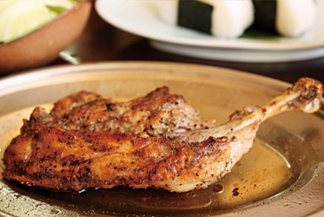 骨付鳥 〈香川県〉 半世紀以上の伝統をもつ丸亀市の名物。塩、こしょう、にんにくでスパイシーに焼き、手づかみで食べる。食べ応えのある親鶏と、柔らかい若鶏の2種類がある。 写真提供/丸亀市 |